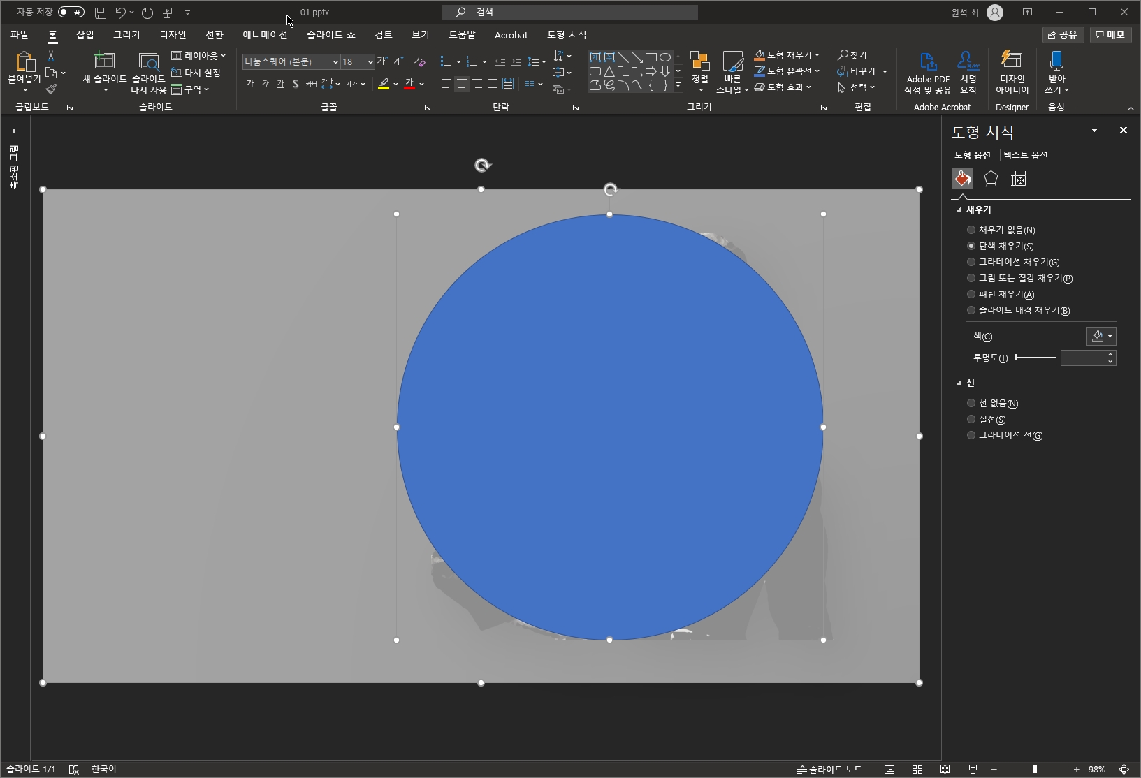 - 흰색으로 색을 우선 설정했습니다. 색상은 원하시는 색으로 하시되, 그라데이션을 사용하면 안됩니다.